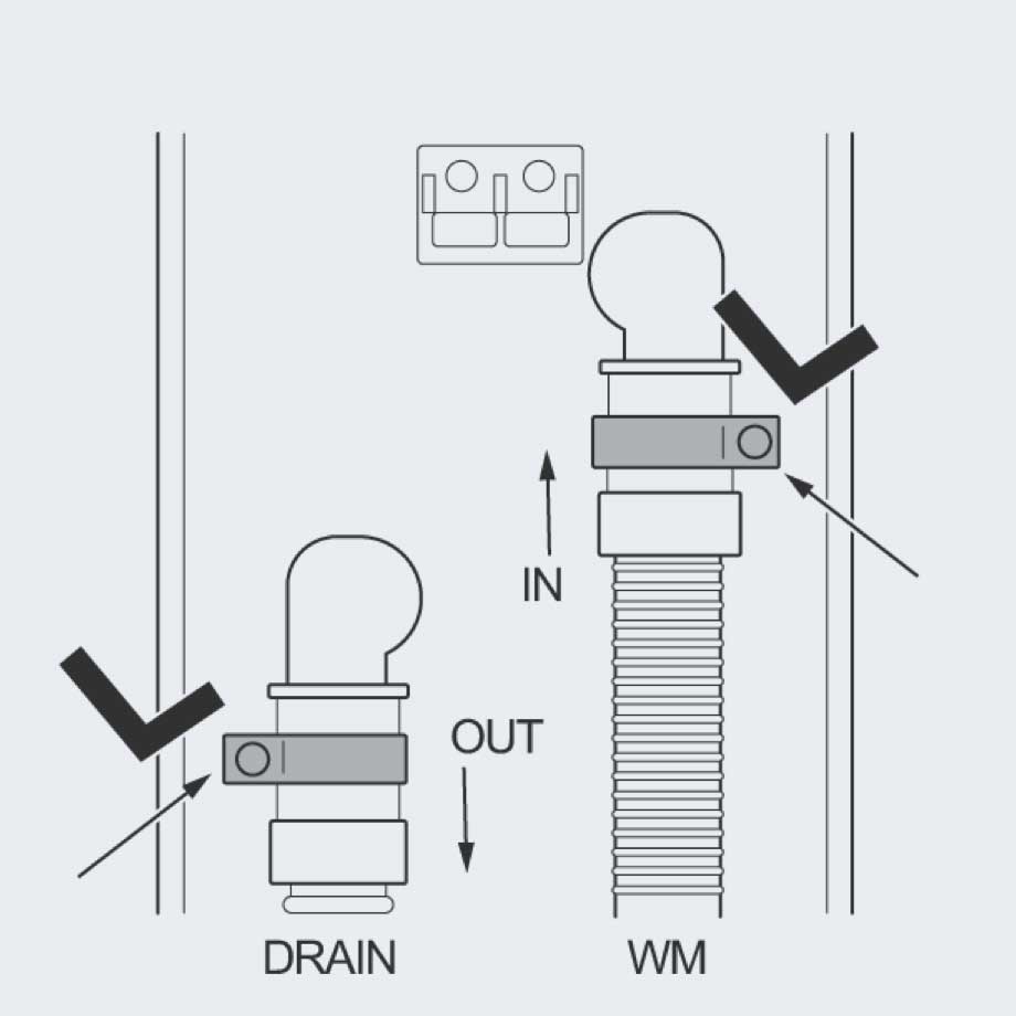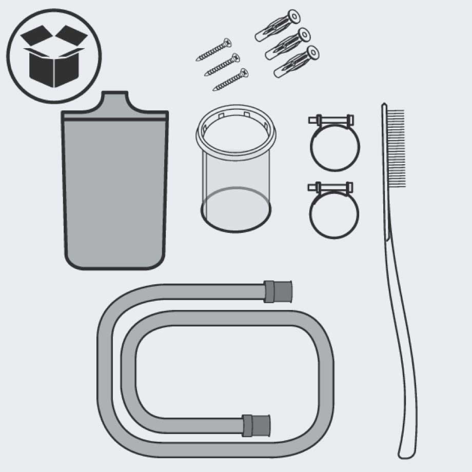 - Pirms sienas stiprinājuma izvietošanas pārbaudiet, kur atrodas drenāžas punkts. Mikroplastmasas filtrs ir aprīkots ar vienu drenāžas cauruli, kuras garums ir 100 cm.
