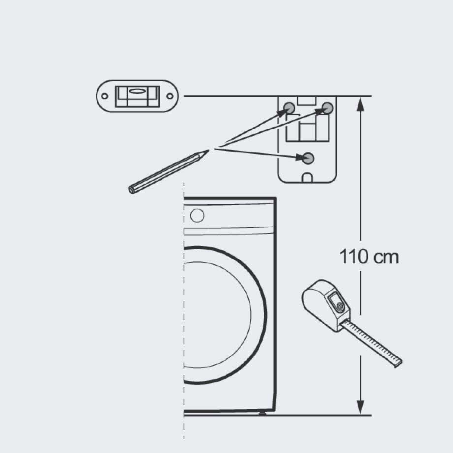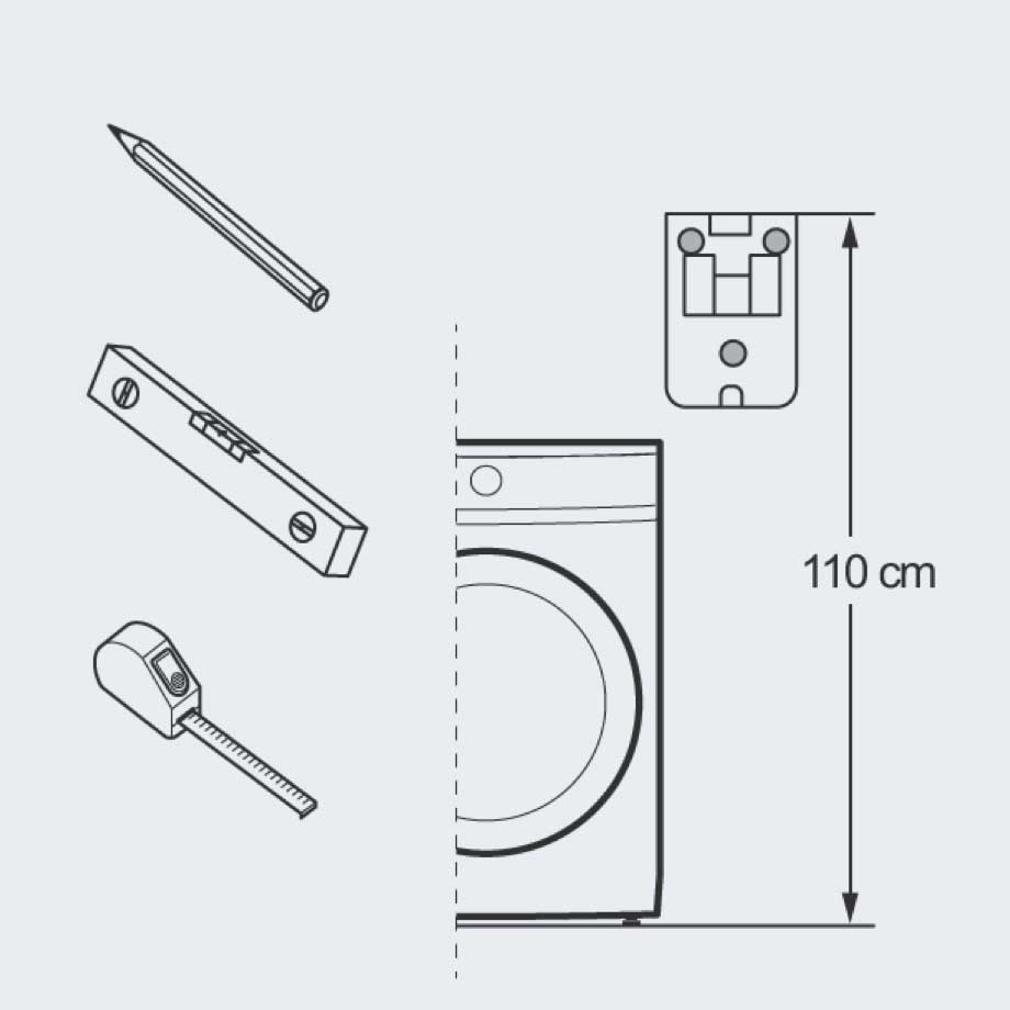 Lai pareizi un droši uzstādītu mikroplastmasas filtru, tas ir jānostiprina pie sienas blakus veļas mašīnai. Lai izvairītos no noplūdēm, neuzstādiet mikroplastmasas filtru tieši virs veļas mašīnas, tā vietā uzstādiet mikroplastmasas filtru aptuveni 110 cm virs grīdas līmeņa veļas mašīnas labajā vai kreisajā pusē.