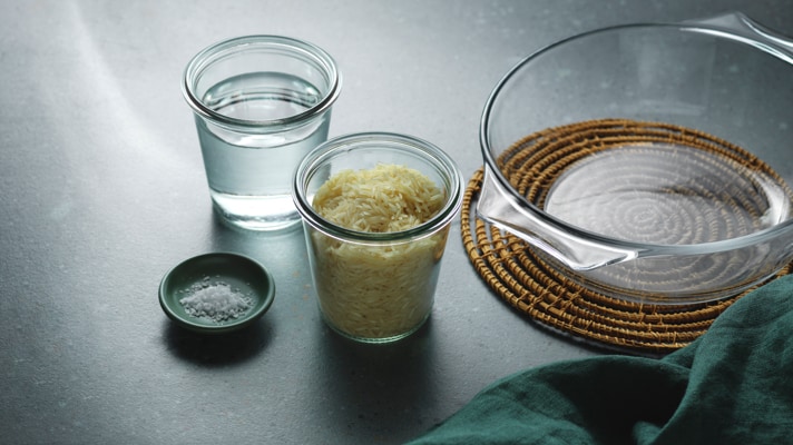 Viss, kas jums nepieciešams, ir rīsi, ūdens un šķipsniņa sāls.